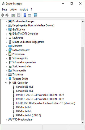 Doppelklicken Sie auf USB-Controller, um die Liste zu erweitern.